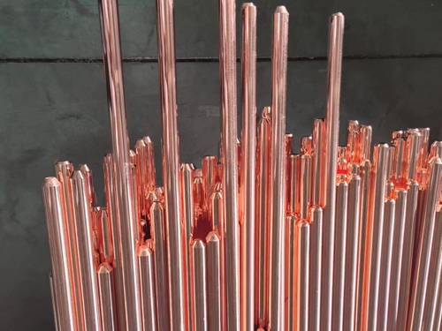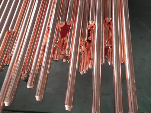 镀铜接地棒采用先进的电镀工艺将纯度为99.9%的电解铜均匀覆盖到优质低碳钢芯上,使铜层和钢之间以分子形式紧密结合,低碳钢芯经过大缩径冷拉加工技术,具有铜层厚、耐腐蚀性强、粘合度好、不剥离、可轧制螺纹、有恒定的低电阻和良好的可塑性等特点。